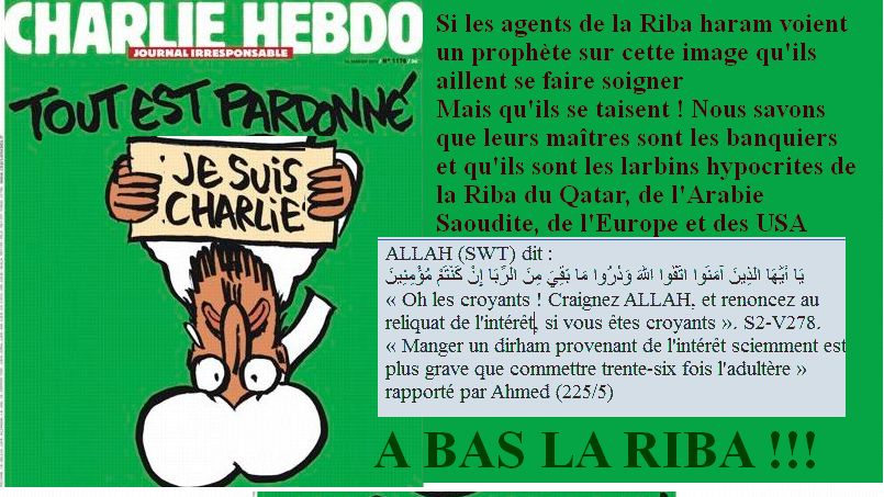 #ABasLaRiba Aucune personne sensée ne reconnait un #prophète sur la couverture #JeSuisCharlie de @CharlieHebdo #Riba